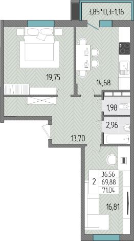 Продается 2-комн. квартира, 71,04 м²