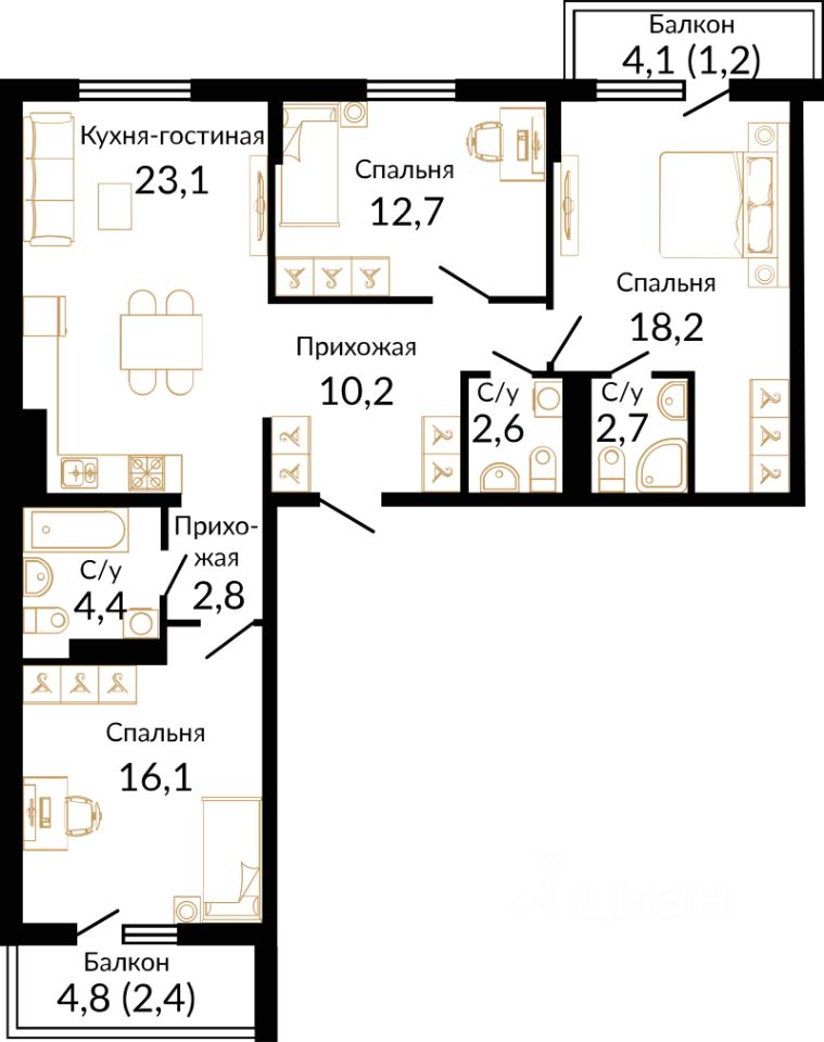 В домах микрорайона "Южане" представлены квартиры-студии и одно-двухкомнатные ква