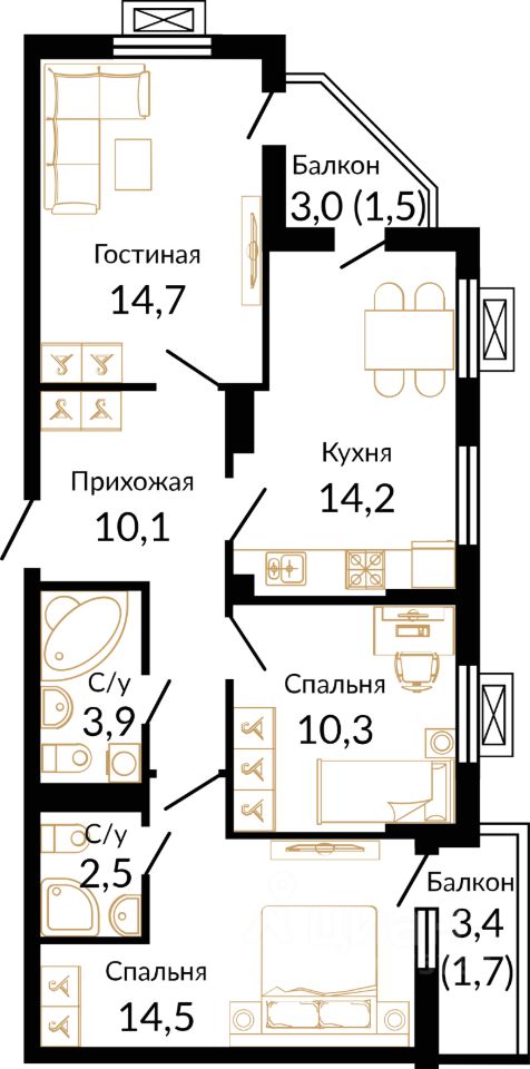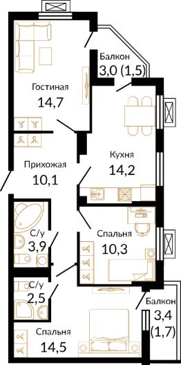 В домах микрорайона "Южане" представлены квартиры-студии и одно-двухкомнатные кварт
