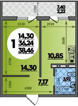 Продаётся 1-комнатная квартира в сданном доме (Литер 14), срок сдачи: I-кв. 2025, общей площадью 38.46 кв.м., на 5 этаже. РАСПОЛОЖЕНИЕ