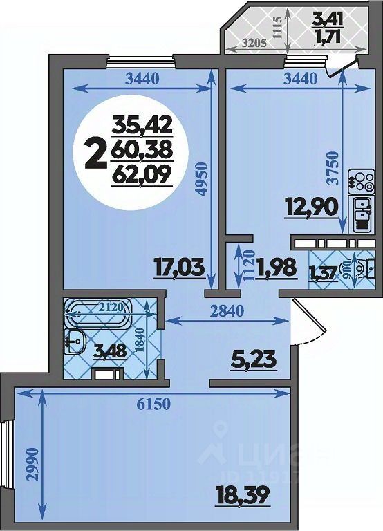 Продаётся 2-комнатная квартира в сданном доме (Литер 6), срок сдачи: II-кв. 2024, общей площадью 62.09 кв.м., на 7 этаже. РАСПОЛОЖЕНИЕ