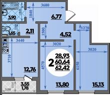 Продаётся 2-комнатная квартира в сданном доме (Литер 5), срок сдачи: II-кв. 2024, общей площадью 62.42 кв.м., на 1 этаже. РАСПОЛОЖЕНИЕ