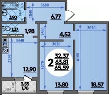 Продаётся 2-комнатная квартира в сданном доме (Литер 5), срок сдачи: II-кв. 2024, общей площадью 65.59 кв.м., на 7 этаже. РАСПОЛОЖЕНИЕ