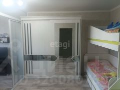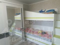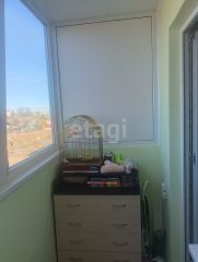 В квартире частично остается мебель: кухонный гарнитур и большой новый шкаф.