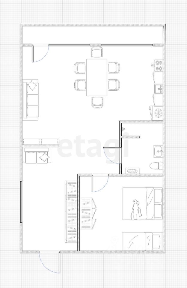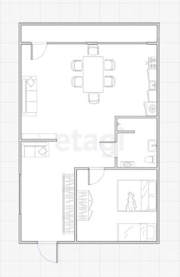Внутри просторная входная группа, кухня-гостиная, совмещенный сан. узел, спальная комната.