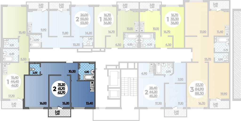 Продаётся 2-комнатная квартира в сданном доме (Литер 8.3), срок сдачи: III-кв. 2023, общей площадью 62.7 кв.м., на 15 этаже. ВЫГОДНОЕ РАСПОЛОЖЕНИЕ