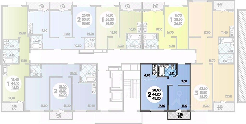 Продаётся 2-комнатная квартира в сданном доме (Литер 8.3), срок сдачи: III-кв. 2023, общей площадью 45.2 кв.м., на 16 этаже. ВЫГОДНОЕ РАСПОЛОЖЕНИЕ