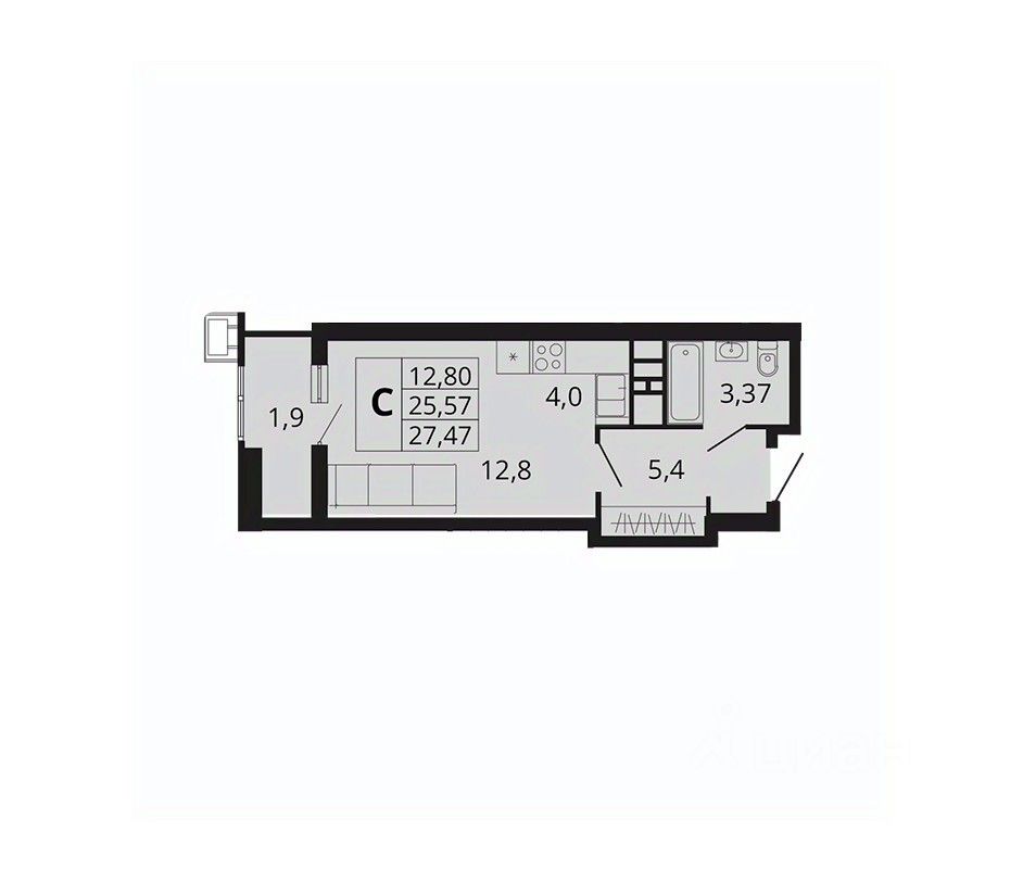 Общая площадь27,47 м²