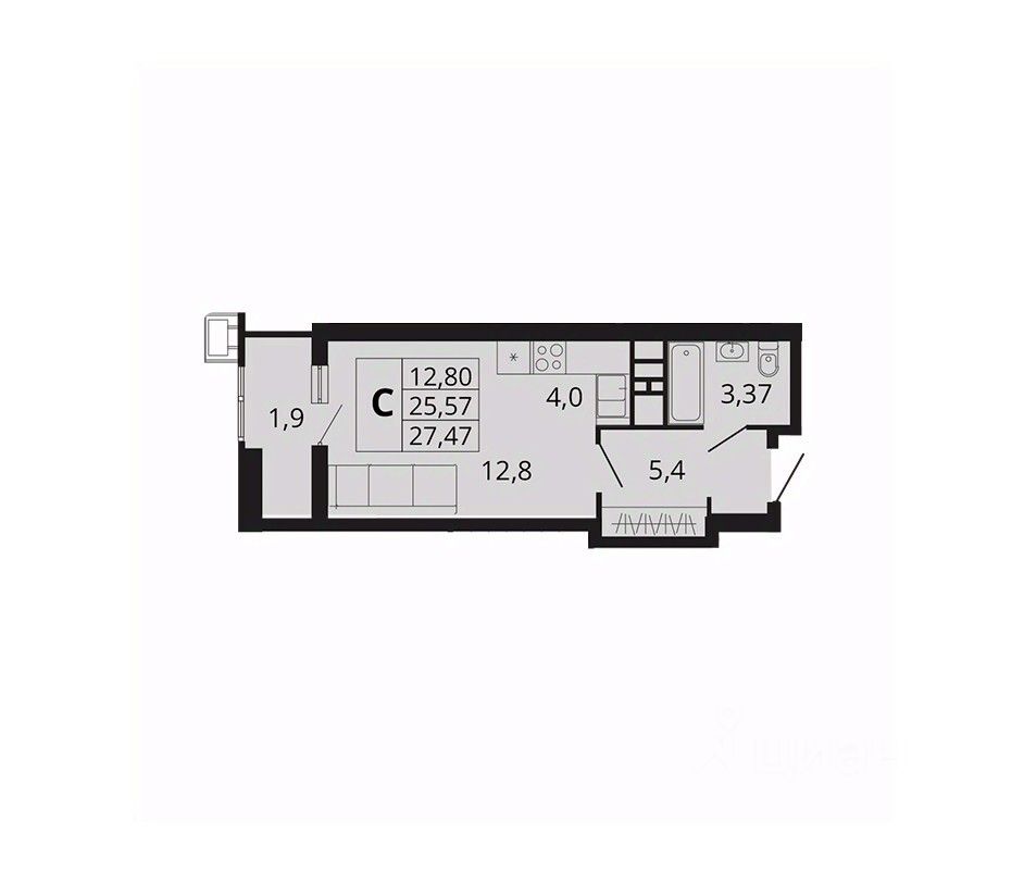 Общая площадь27,47 м²