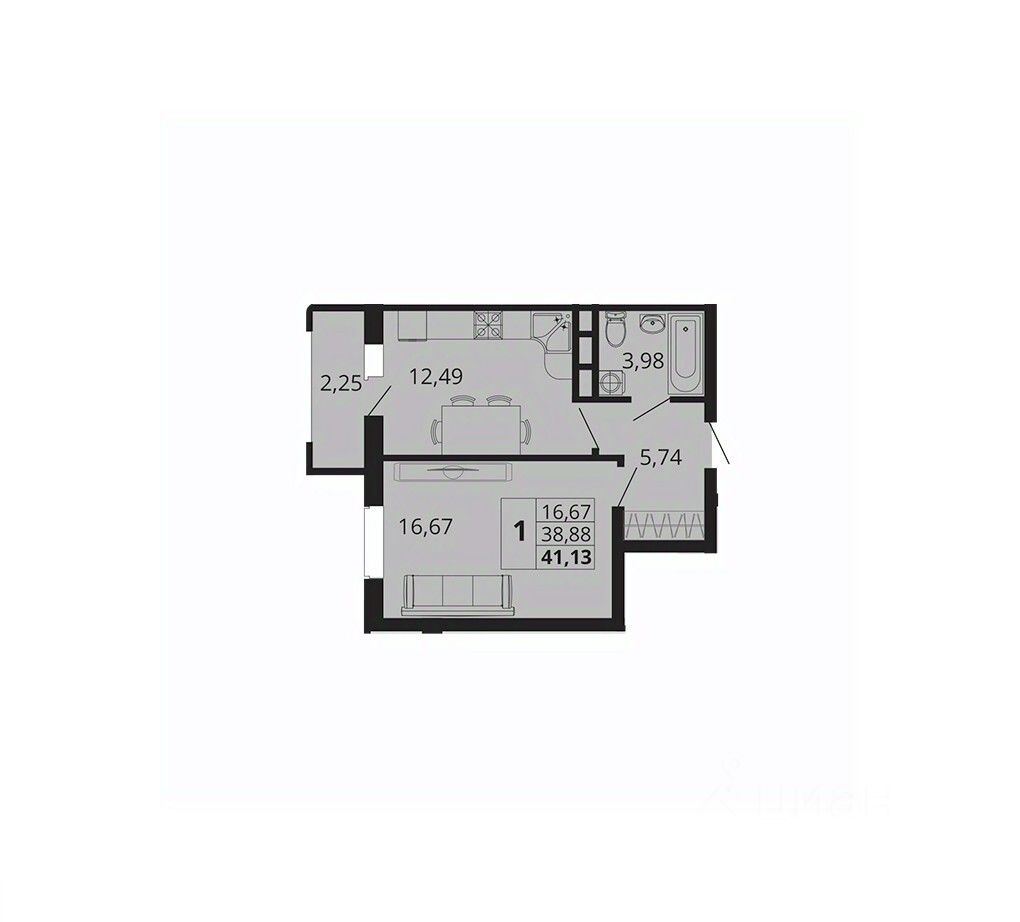 Общая площадь41,13 м²