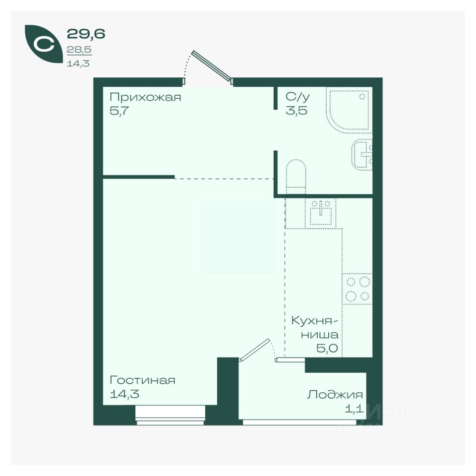 14,3 м²