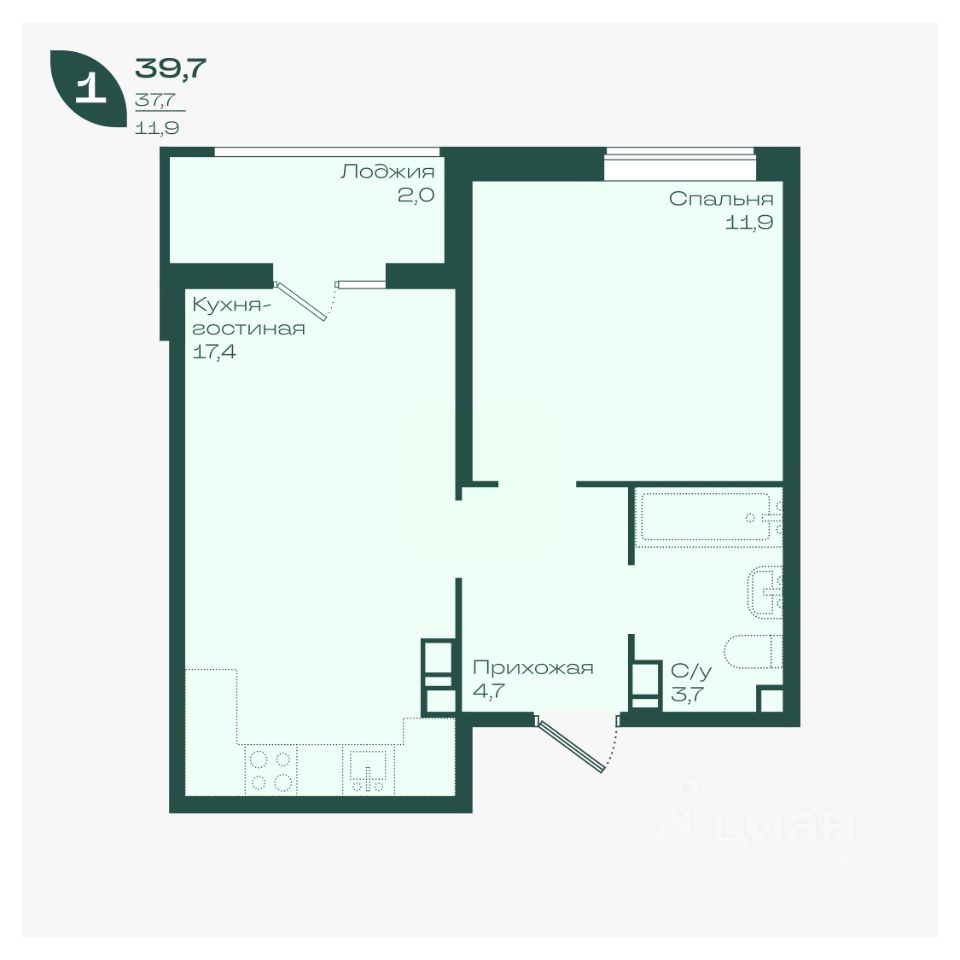 Общая площадь39,7 м²