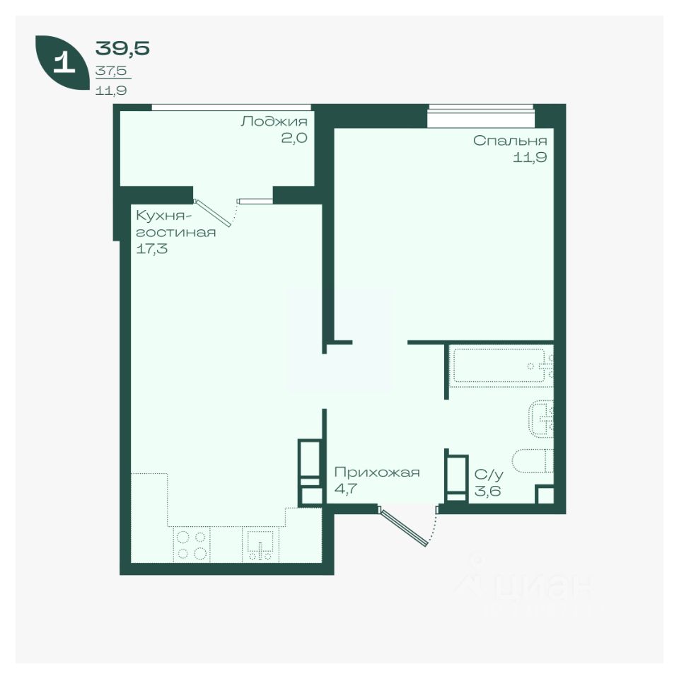 Общая площадь39,5 м²
