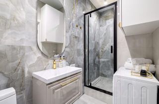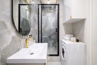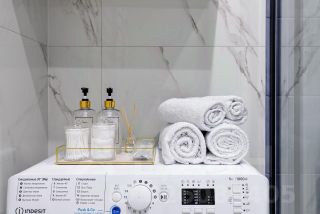 Санузелы совмещенные, выполнены в стильном дизайне с качественной сантехникой и стиральной машиной. В прихожей предусмотрены удобные шкафы для хранения вещей.