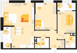 Продаётся 3-комнатная квартира в строящемся доме (Квартал 1.5 - Литер 1), срок сдачи: I-кв. 2027, общей площадью 83.4 кв.м., на 3 этаже. Жилой район "Первое