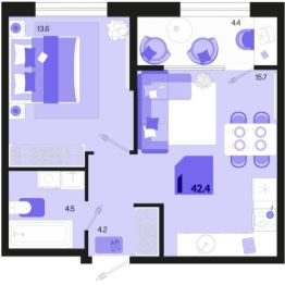 Продаётся 1-комнатная квартира в строящемся доме (Квартал 1.5 - Литер 1), срок сдачи: I-кв. 2027, общей площадью 40.2 кв.м., на 2 этаже. Жилой район "Первое