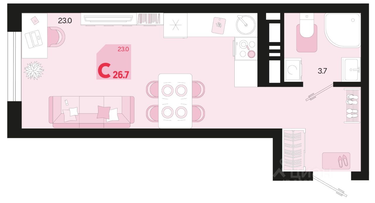 Продаётся 1-комнатная квартира в строящемся доме (Квартал 1.4 - Литер 2), срок сдачи: I-кв. 2027, общей площадью 26.7 кв.м., на 12 этаже. Жилой район "Первое