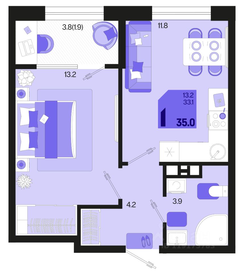 Продаётся 1-комнатная квартира в строящемся доме (Квартал 1.4 - Литер 2), срок сдачи: I-кв. 2027, общей площадью 35 кв.м., на 7 этаже. Жилой район "Первое
