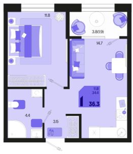 Продаётся 1-комнатная квартира в строящемся доме (Квартал 1.4 - Литер 2), срок сдачи: I-кв. 2027, общей площадью 36.3 кв.м., на 2 этаже. Жилой район "Первое