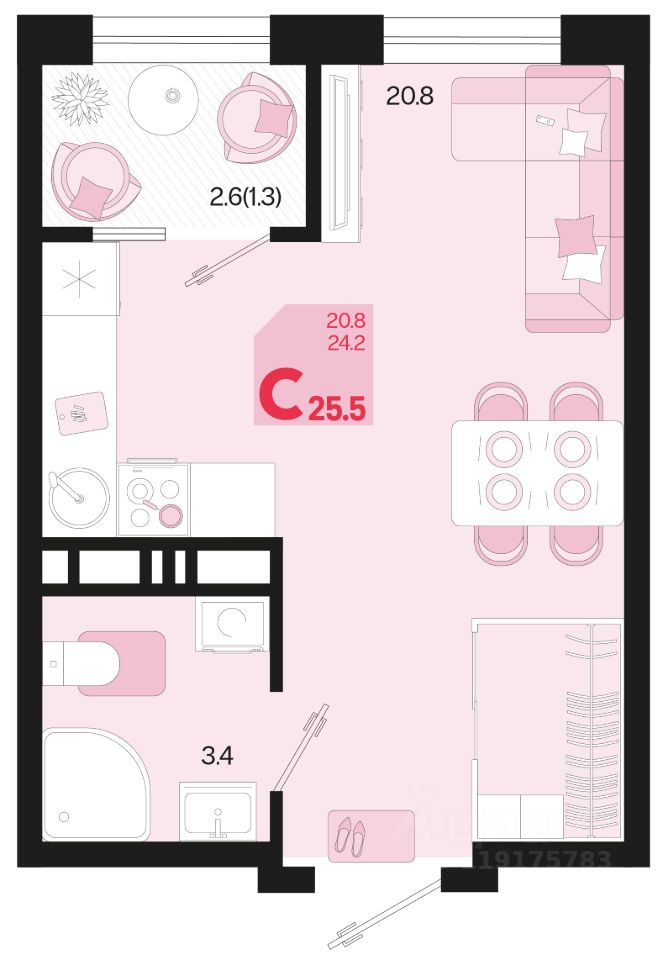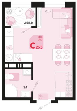 Продаётся 1-комнатная квартира в строящемся доме (Квартал 1.4 - Литер 2), срок сдачи: I-кв. 2027, общей площадью 25.5 кв.м., на 11 этаже. Жилой район "Первое