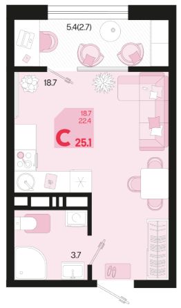 Продаётся 1-комнатная квартира в строящемся доме (Квартал 1.4 - Литер 2), срок сдачи: I-кв. 2027, общей площадью 25.1 кв.м., на 11 этаже. Жилой район "Первое