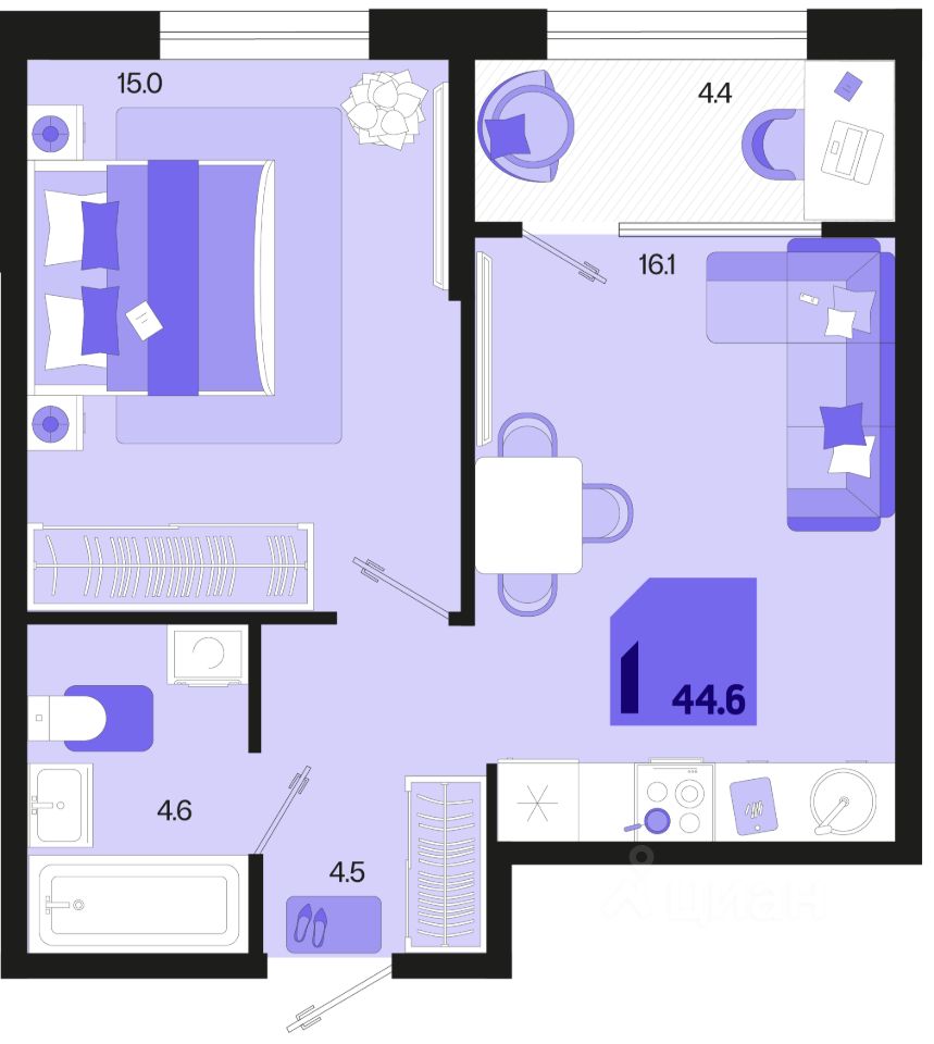 Продаётся 1-комнатная квартира в строящемся доме (Квартал 1.2 - Литер 1), срок сдачи: I-кв. 2027, общей площадью 42.4 кв.м., на 2 этаже. Жилой район "Первое