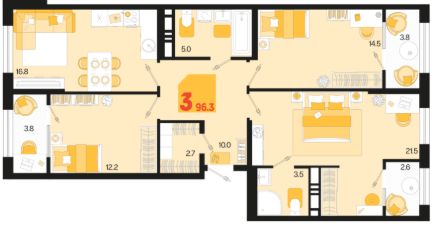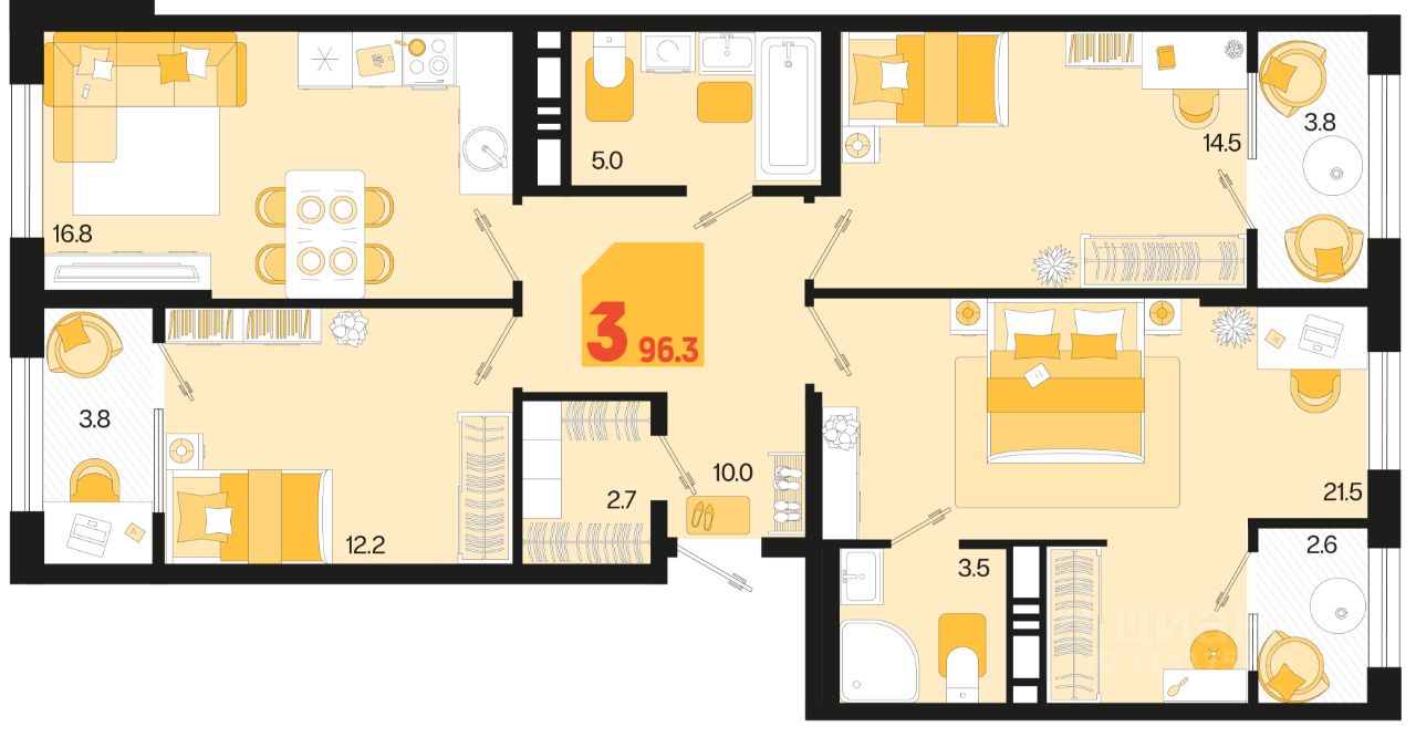 Продаётся 3-комнатная квартира в строящемся доме (Квартал 1.1 - Литер 2), срок сдачи: IV-кв. 2026, общей площадью 91.2 кв.м., на 18 этаже. Жилой район "Первое
