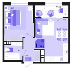 Продаётся 1-комнатная квартира в строящемся доме (Квартал 1.5 - Литер 2), срок сдачи: IV-кв. 2026, общей площадью 39.2 кв.м., на 9 этаже. Жилой район "Первое
