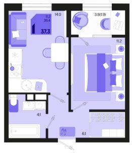 Продаётся 1-комнатная квартира в строящемся доме (Квартал 1.2 - Литер 2), срок сдачи: III-кв. 2026, общей площадью 37.3 кв.м., на 8 этаже. Жилой район "Первое