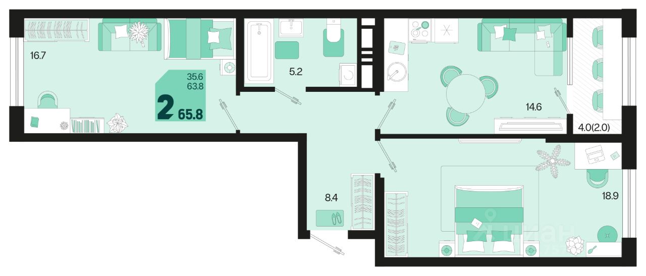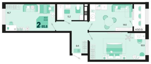 Продаётся 2-комнатная квартира в строящемся доме (Квартал 1.3 - Литер 1), срок сдачи: II-кв. 2027, общей площадью 65.8 кв.м., на 8 этаже. Жилой район "Первое