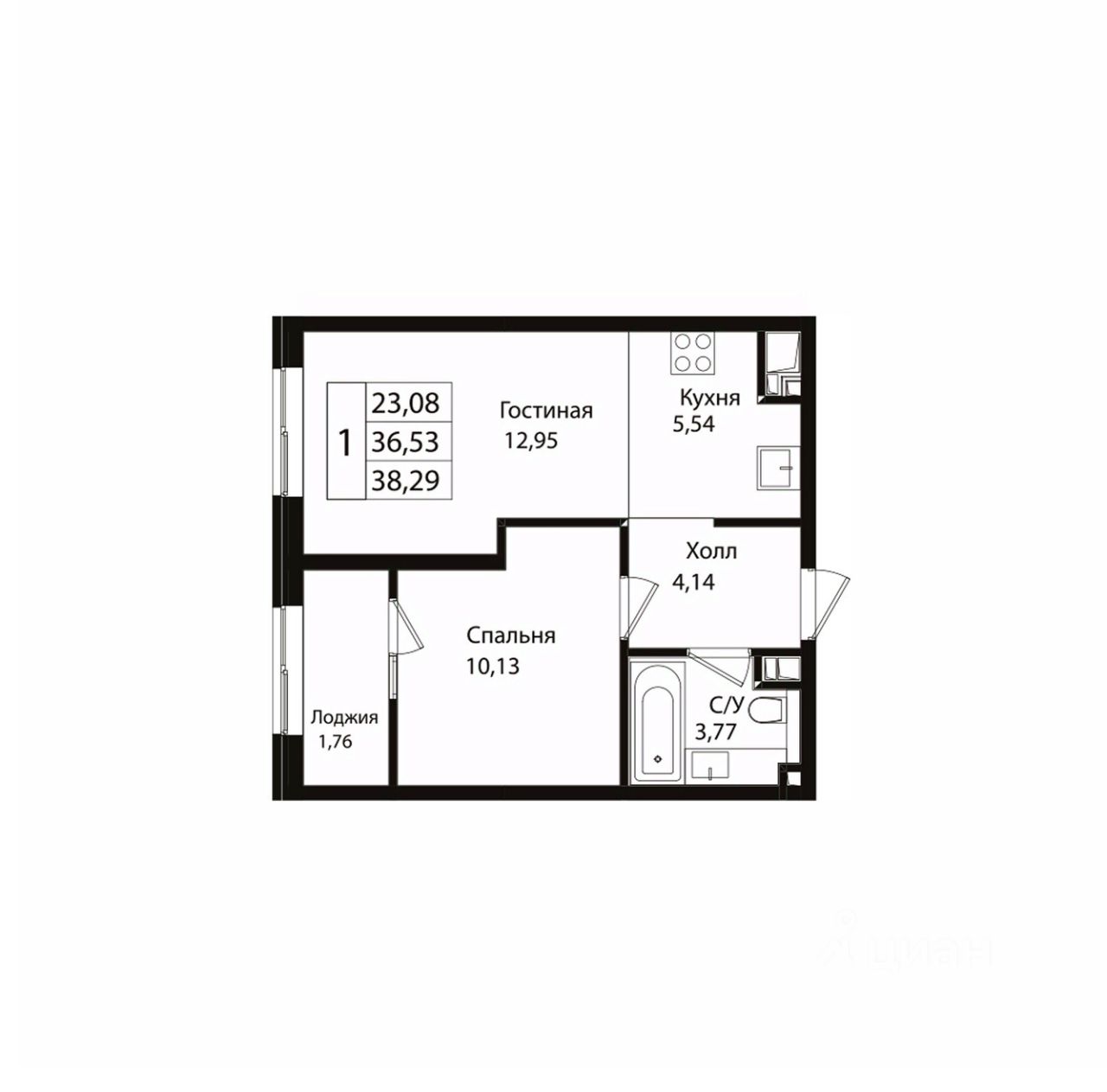 Общая площадь38,29 м²