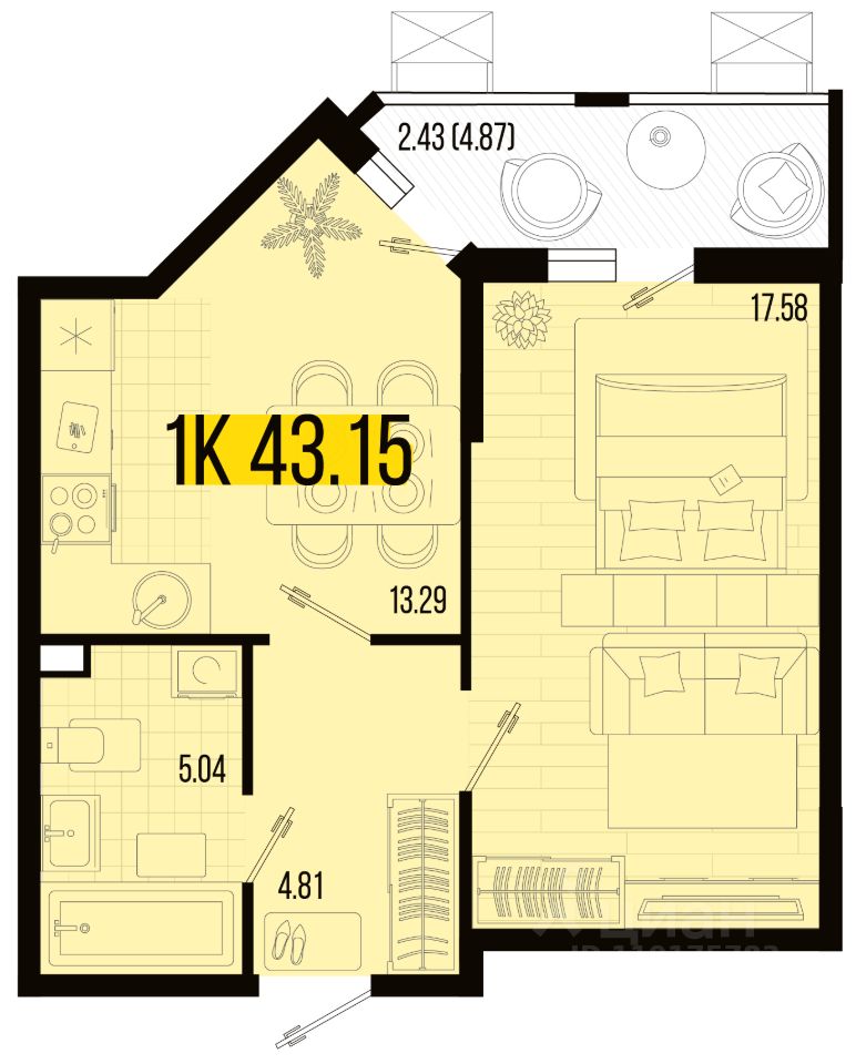 Продаётся 1-комнатная квартира в строящемся доме (Литер 4), срок сдачи: I-кв. 2026, общей площадью 43.15 кв.м., на 1 этаже. Жилой комплекс "Цветной бульвар" — это уютные дома высотой от 5 до 8 этажей, где каждый найдет квартиру своей мечты: от стильных студий до роскошных двухуровневых квартир с потрясающим видом на гору Собер-Баш! Представьте себе жизнь среди живописной природы, наслаждаясь прогулками по широкому зеленому бульвару длиной 460 метров, окруженному красивыми зелеными насаждениями и зонами для занятий спортом и отдыха всей семьей. Для детей современный детский сад и школа, где специально созданный музей и уникальная STEAM-лаборатория откроют перед ними удивительный мир науки и творчества!
