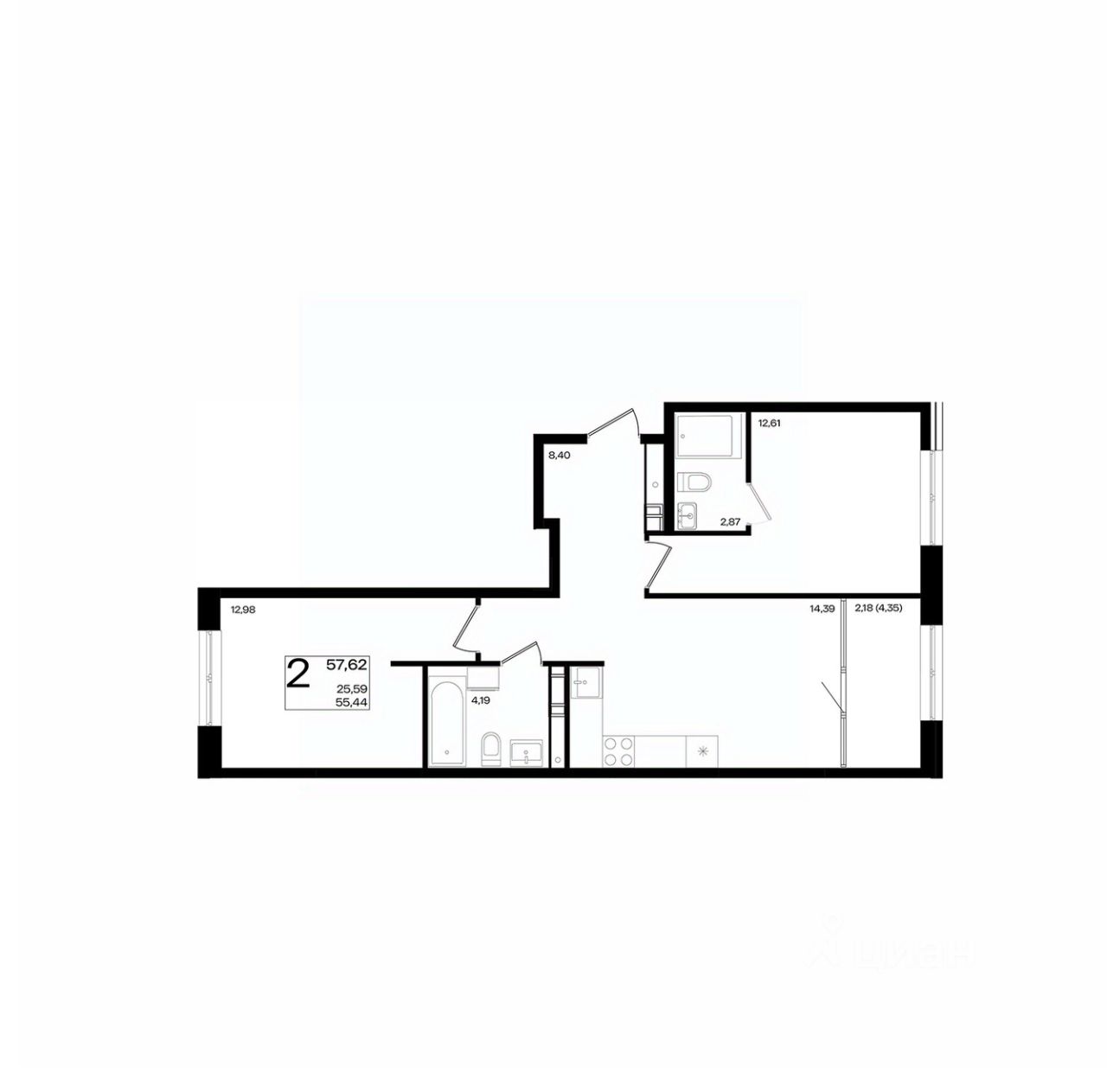 Продается 2-комн. квартира, 57,62 м²