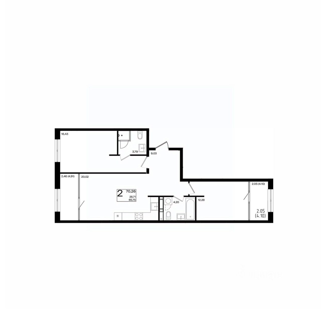 Продается 2-комн. квартира, 70,26 м²
