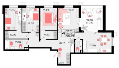 Продаётся 4-комнатная квартира в сданном доме (Литер 3), срок сдачи: III-кв. 2025, общей площадью 120.7 кв.м., на 14 этаже. "Римские Каникулы" - новый жилой комплекс от компании "ЮгСтройИмпериал" в Северном районе Армавира.
