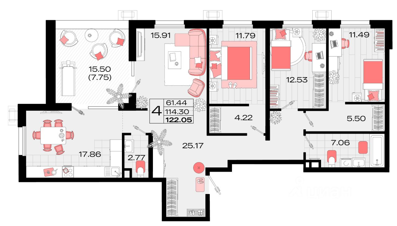Продаётся 4-комнатная квартира в сданном доме (Литер 2), срок сдачи: III-кв. 2024, общей площадью 120.75 кв.м., на 14 этаже. "Римские Каникулы" - новый жилой комплекс от компании "ЮгСтройИмпериал" в Северном районе Армавира.