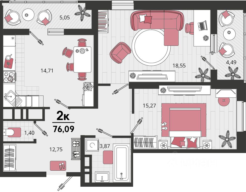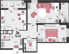 Продаётся 2-комнатная квартира в строящемся доме (Литер 16), срок сдачи: II-кв. 2028, общей площадью 69.7 кв.м., на 17 этаже. "Родные просторы"- самодостаточный