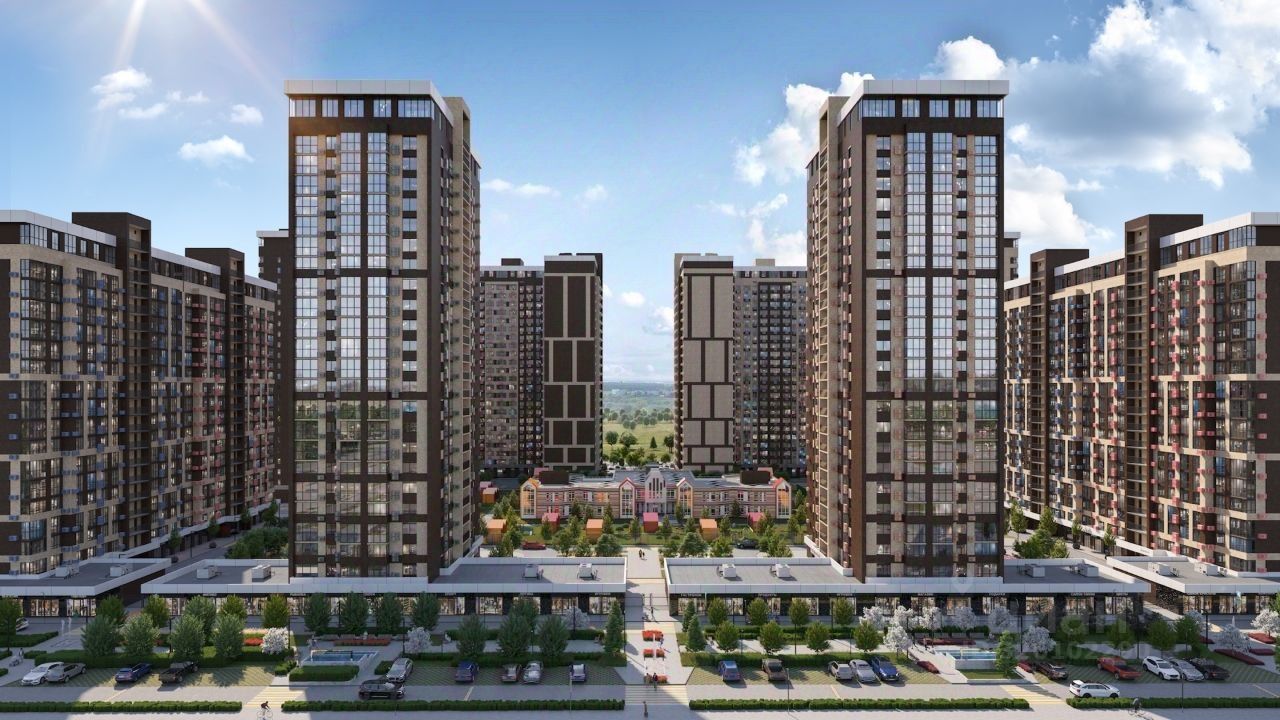 от 9 до 24 этажей, уютные дворы со спортивными и игровыми площадками,
