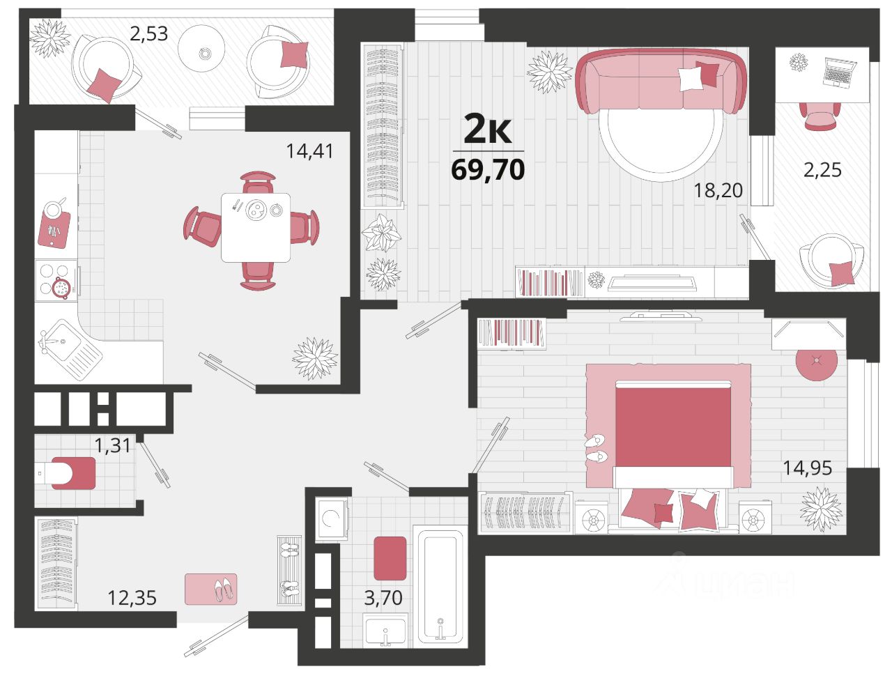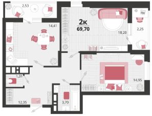 Продаётся 2-комнатная квартира в строящемся доме (Литер 16), срок сдачи: II-кв. 2028, общей площадью 69.7 кв.м., на 4 этаже. "Родные просторы"- самодостаточный