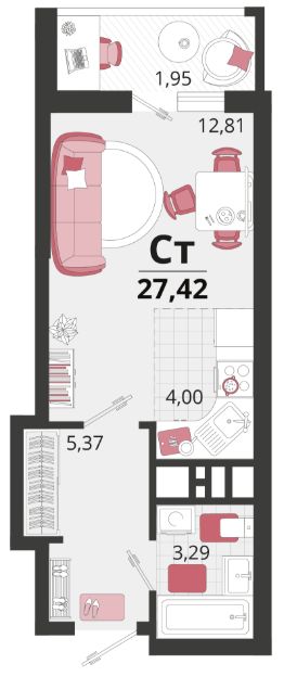 Продаётся 1-комнатная квартира в строящемся доме (Литер 16), срок сдачи: II-кв. 2028, общей площадью 27.42 кв.м., на 5 этаже. "Родные просторы"- самодостаточный