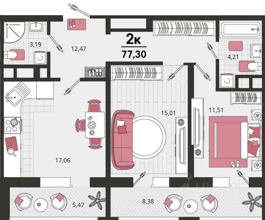 Продаётся 2-комнатная квартира в строящемся доме (Литер 14), срок сдачи: II-кв. 2026, общей площадью 70.37 кв.м., на 2 этаже. "Родные просторы"- самодостаточный
