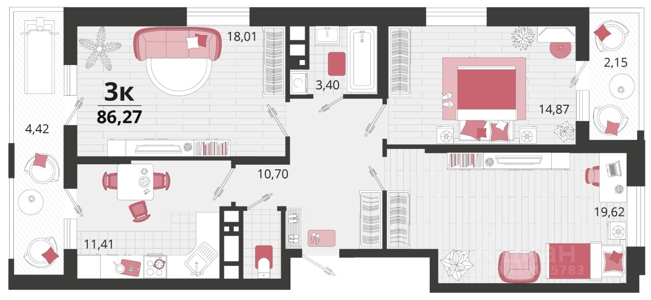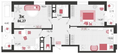 Продаётся 3-комнатная квартира в строящемся доме (Литер 14), срок сдачи: II-кв. 2026, общей площадью 86.27 кв.м., на 3 этаже. "Родные просторы"- самодостаточный