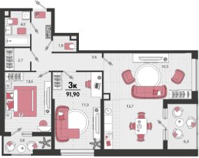 Продаётся 3-комнатная квартира в строящемся доме (Литер 12), срок сдачи: II-кв. 2026, общей площадью 86.85 кв.м., на 18 этаже. "Родные просторы"- самодостаточный