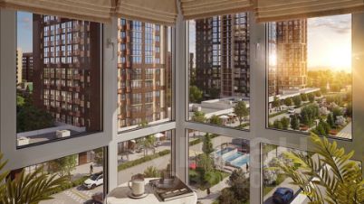 от 9 до 24 этажей, уютные дворы со спортивными и игровыми площадками,