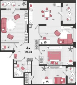 Продаётся 4-комнатная квартира в строящемся доме (Литер 12), срок сдачи: II-кв. 2026, общей площадью 121.05 кв.м., на 18 этаже. "Родные просторы"- самодостаточный