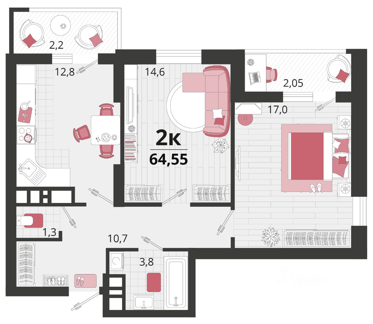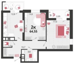 Продаётся 2-комнатная квартира в строящемся доме (Литер 12), срок сдачи: I-кв. 2026, общей площадью 64.55 кв.м., на 2 этаже. "Родные просторы"- самодостаточный