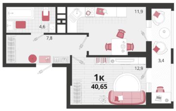 Продаётся 1-комнатная квартира в строящемся доме (Литер 12), срок сдачи: I-кв. 2026, общей площадью 40.65 кв.м., на 2 этаже. "Родные просторы"- самодостаточный
