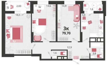 Продаётся 3-комнатная квартира в строящемся доме (Литер 12), срок сдачи: I-кв. 2026, общей площадью 79.7 кв.м., на 11 этаже. "Родные просторы"- самодостаточный