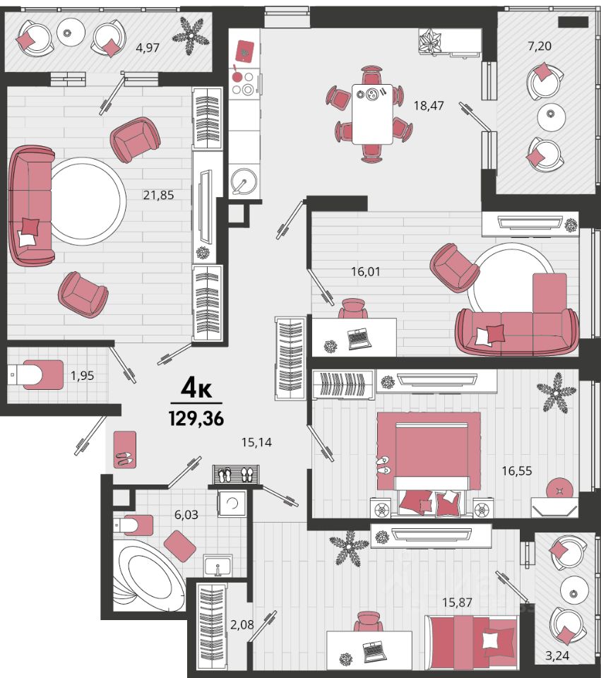 Продаётся 4-комнатная квартира в строящемся доме (Литер 15), срок сдачи: II-кв. 2026, общей площадью 121.66 кв.м., на 18 этаже. "Родные просторы"- самодостаточный