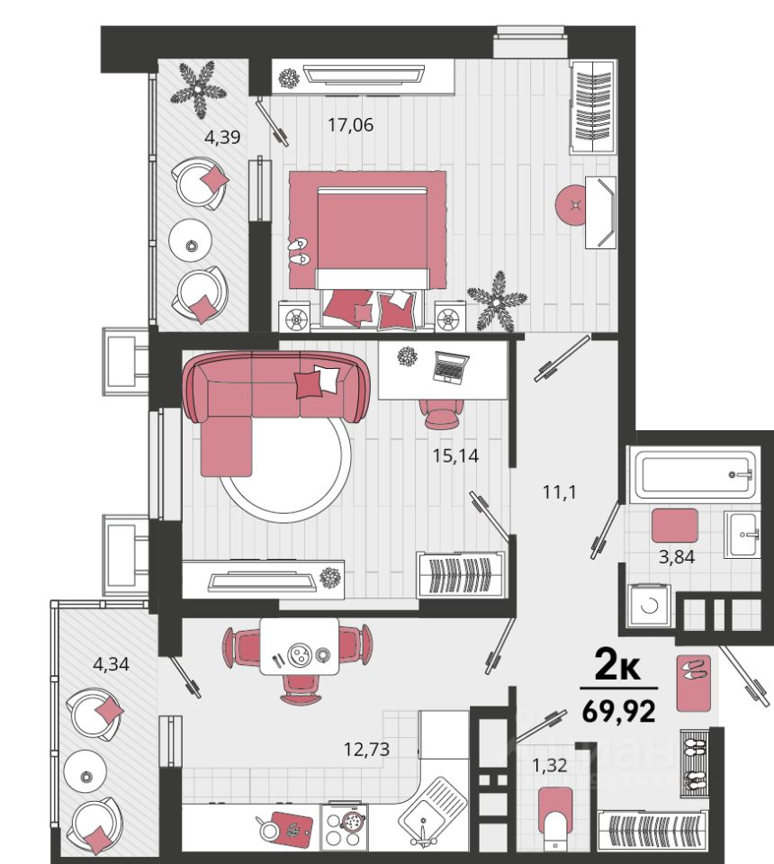 Продаётся 2-комнатная квартира в строящемся доме (Литер 15), срок сдачи: II-кв. 2026, общей площадью 65.56 кв.м., на 16 этаже. "Родные просторы"- самодостаточный